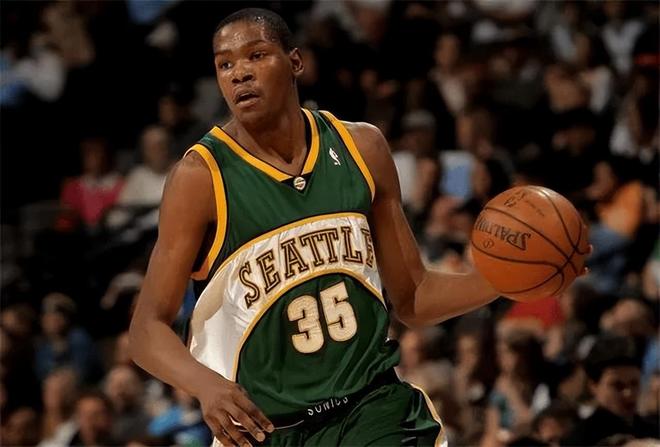 杜兰特年轻时比较偏科,是出了名的得分手,但作为历史级前锋他也在新秀赛季拿下过40+5+5,那场比赛发生在2008年4月16日,彼时杜兰特的年龄也不过19岁200天,他在超音速对阵勇士的比赛中25投18中高效砍下43分13篮板6助攻2盖帽,帮助球队客场取胜,这场比赛是超音速的赛季收官之战,也是西雅图超音速在NBA的最后一场比赛,下个赛季球队将从西雅图搬迁至俄克拉荷马并更名为雷霆,阿杜用NBA生涯首场40+和一场胜利送别了超音速。
