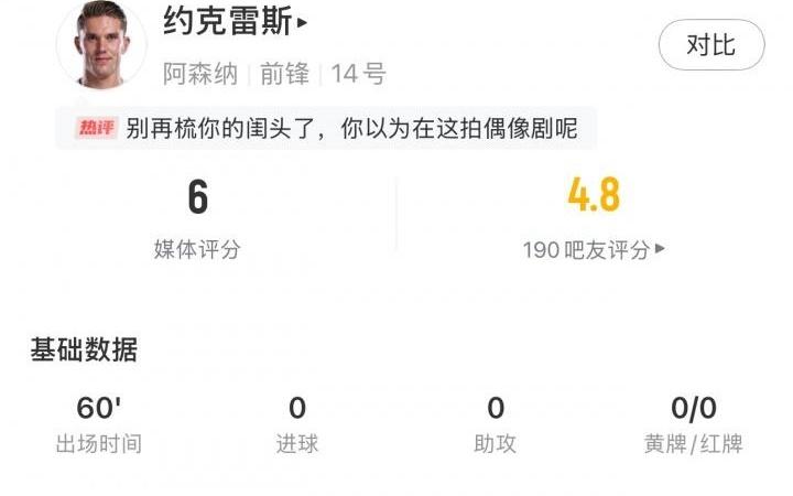 太黑了!国外球迷:这是约克雷斯对阵曼联比赛的表现!