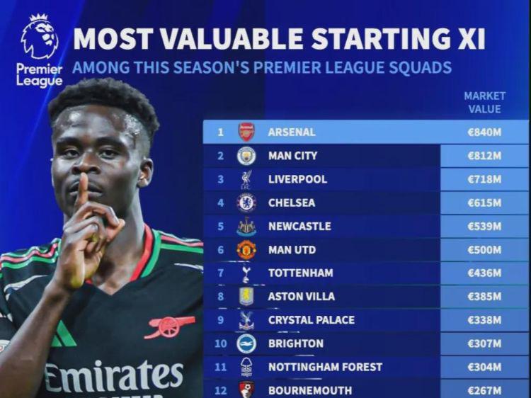 OPTA预测新赛季英超排名:利物浦阿森纳曼城前三,曼联第12