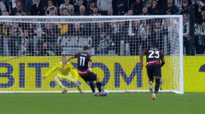 第三个离谱的是第90分钟,米兰几乎是咬住了一口气,想要在比赛末来制造机会。三传两倒,他们就推到禁区,塞入皮球时机把握,堪称完美莱奥拿到了单对单的机会。可惜他的射门几乎是没有给出任何的威胁,迪格雷戈里奥估计都没想到自己这次遇到的挑战这么“小”。之后的奇克插入大力补射的,也被尤文队友给堵了出来的。