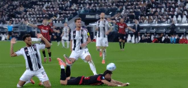 实在是让人忍俊不禁。再配上尤文防守人这个姿势,堪称是“世界名画”了。