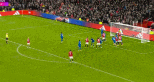 第13分钟,达洛特送出传中,库尼亚抢点干扰了门将,后点埋伏的阿玛德轻松头槌破门,曼联1-0领先。