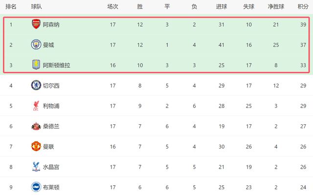 在客场击败埃弗顿之后,阿森纳近4个英超客场,终于取得了首场胜利,他们也重新回到榜首的位置。不过阿尔特塔依然不能大意,因为目前阿森纳仅仅领先曼城2分,此外净胜球比对手少4个,也就是说后面的比赛,阿森纳但凡有一场不胜,随时都可能被曼城反超,失去榜首宝座。